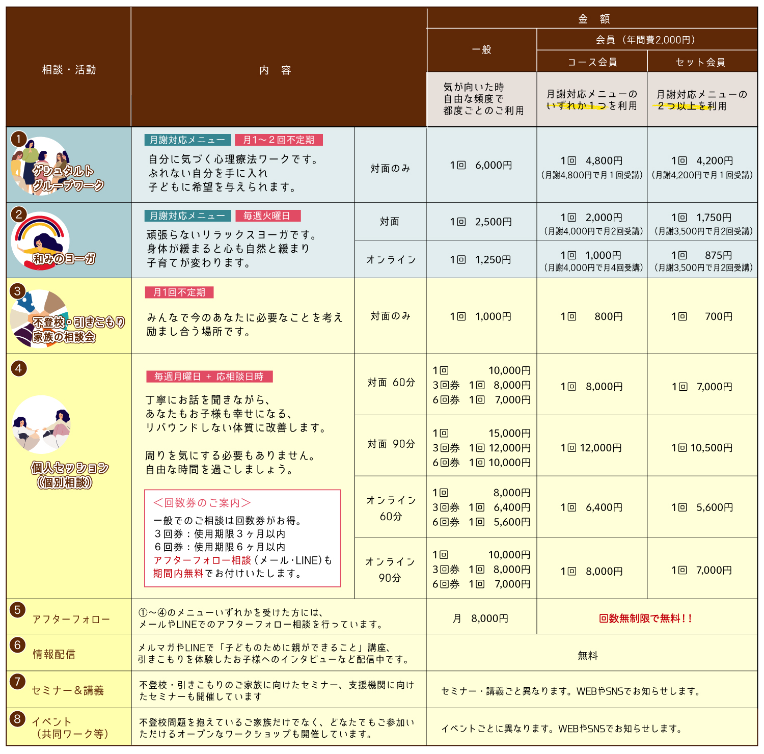 一回だけの受講では、すぐにいつものパターンに戻ります。一人で継続し続けることは難しいです。仲間に励まされ、応援されて、続けることが可能になります。継続して教室へ通い、しっかりと効果を手に入れていただくためのお得な月謝制です。会員メニューから自分にあったコースをお選びください。
